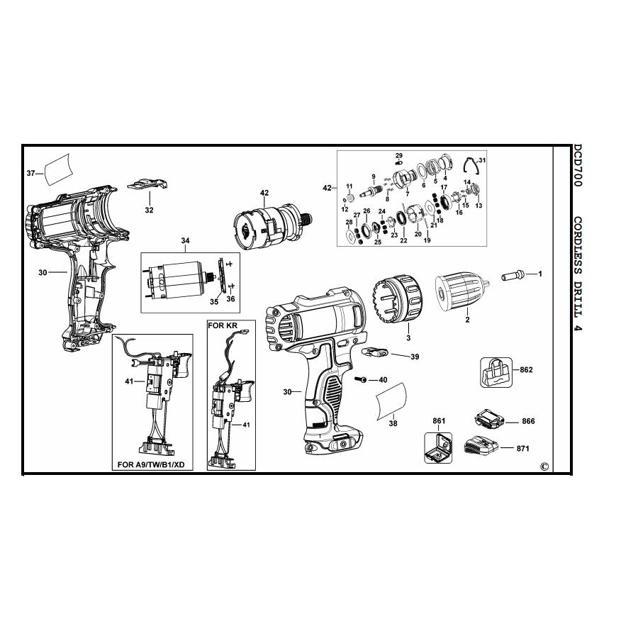 • BỘ TRUYỀN ĐỘNG BÁNH RĂNG DÙNG CHO MÁY KHOAN PIN DCD700 - No.42